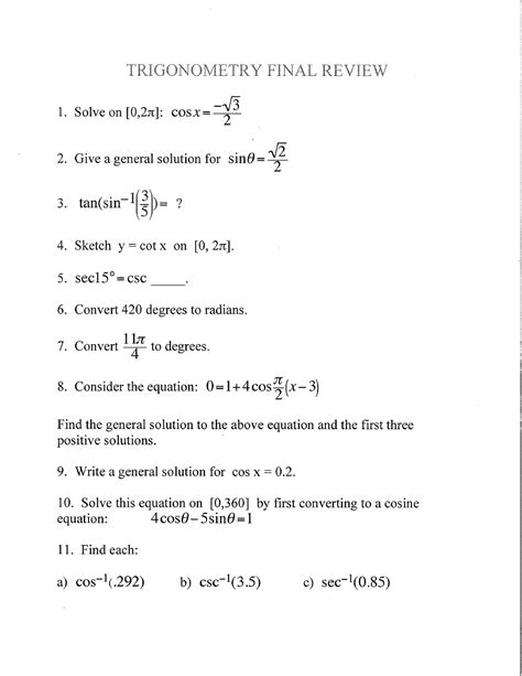 Reading Online final examination form a trigonometry answers Doc